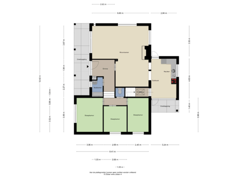 Slaapkamer 3 (9,5m²) is eveneens aan de zijkant gelegen
