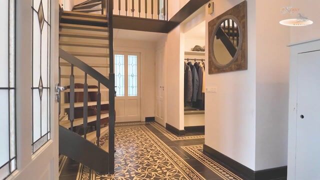 - In de woonkamer, keuken en het achterste kantoor ligt doorlopend vloerverwarming met keramisch parket.