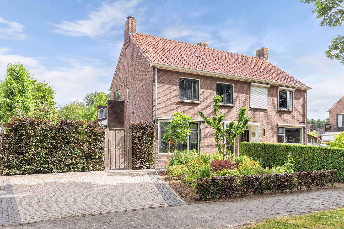 Op een goede locatie in een straat met veel groen en bomen staat deze goed onderhouden 2-onder-1 kapwoning met een overkapping en een houten schuur.