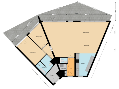De netjes afgewerkte woonkamer heeft een prachtig lichtinval door de vele ramen en is tevens voorzien van vloerverwarming en –verkoeling. Middels diverse openslaande deuren heeft u toegang tot twee aparte balkons van ca 36 m2 gelegen op het noordwesten. Het grootste balkon is middels glasdeuren in zijn geheel af te sluiten zodat u al vroeg in het voorjaar en laat in het najaar kunt genieten van het buitenleven.