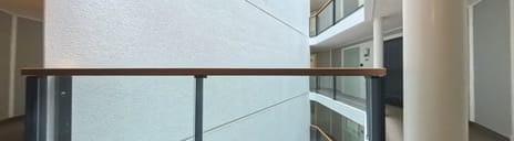 Via de lift komt u op de 5e verdieping van het complex. Vanuit de centrale hal bereikt u de verdieping van het appartement. Via de gang heeft u toegang tot het toilet met hangcloset en fonteintje, tevens bereikt u via de gang de woonkamer en vervolgens de twee slaapkamers. Er is een aparte ruimte waar de warmte terugwin installatie en de aansluiting voor uw wasmachine zich bevinden. Bijzonder van dit appartement is dat er nog een aparte berging aanwezig is.