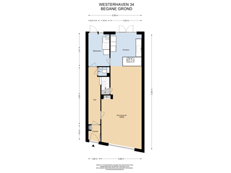 Begane grond: entree, hal, meterkast (actuele groepenverdeling), gang met toilet en trapopgang, royale straat- en dus ook havengerichte woonkamer, open keuken met moderne unit in hoekopstelling, hoge kastenwand en zicht op de tuin via de dubbele tuindeuren, bijkeuken met aansluitpunt voor de wasmachine en toegang tot de tuin.