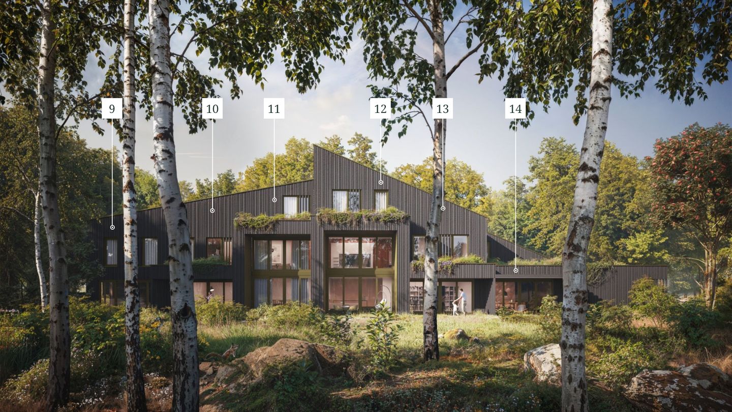 De 28 nieuwbouwwoningen in Meerbos zijn gelijk verdeeld met veertien boslodges en veertien woodcabins. Bij zowel de boslodges als de woodcabins deel je de buitenruimte met je buren.