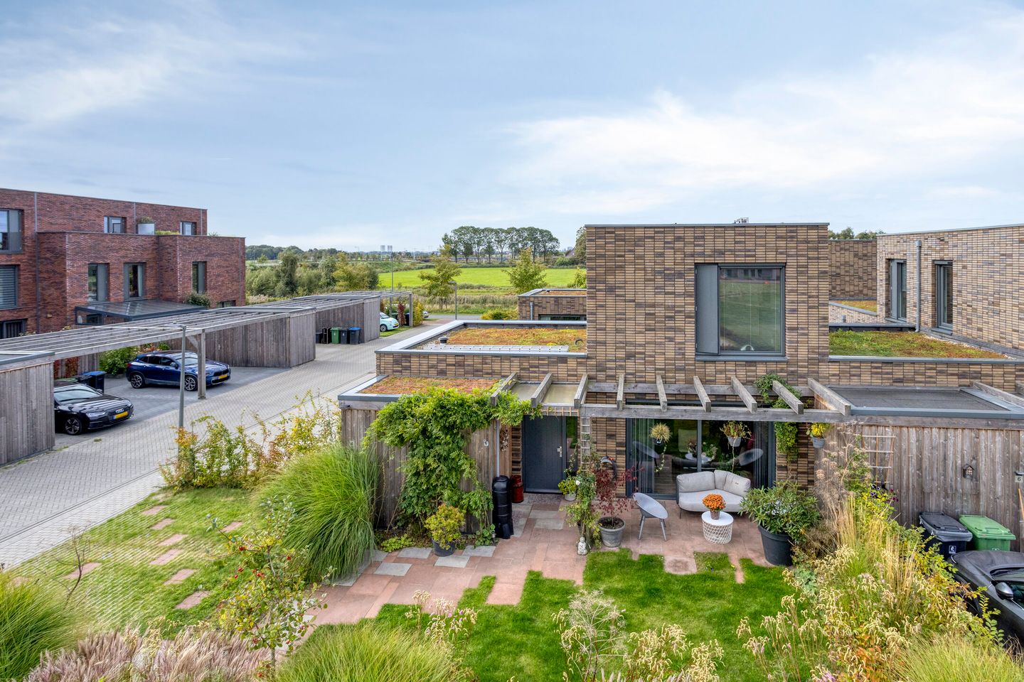 Er zijn 2 tuinen bij deze woning. Een patio welke te bereiken is vanuit de schuifpui in de keuken en de slaapkamer beneden en een fraai aangelegde tuin aan de voorzijde van de woning met zicht op een park. In beide tuinen kun je heerlijk genieten van het buiten zijn. De patio heeft voor de warme dagen een groot elektrisch bedienbaar zonnescherm.