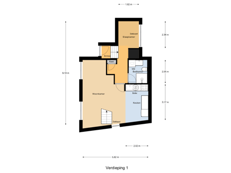 Via een houten trap in deze kamer bereik je de tweede verdieping van het appartement, waar zich een vliering bevindt die extra opslagruimte biedt. Deze ruimte is bovendien veelzijdig te gebruiken; je zou er bijvoorbeeld een bed kunnen neerzetten, een kledingkast kunnen plaatsen, of andere spullen op een nette manier kunnen opbergen.