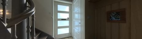 De trap in de entree leidt naar de overloop van de eerste verdieping, waar je toegang hebt tot de moderne badkamer en vier slaapkamers. De trap brengt je verder naar de tweede verdieping, waar een ruime vijfde slaapkamer is.