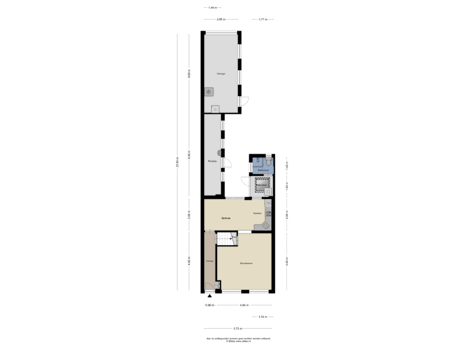 Achter de keuken vindt u de bijkeuken met aansluiting voor de wasmachine en droger, en de badkamer. De compacte badkamer beschikt over een douchehoek en een toilet. Vanuit de bijkeuken is toegang tot de tuin.