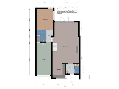 Via een tussenportaal zijn de inpandige garage alsmede de slaapkamer met badkamer toegankelijk.