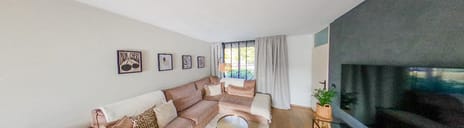 Via de royale voortuin stap je de hal in, waar je meteen ziet dat dit huis goed is onderhouden. Hier vindt je de meterkast, het toilet, de garderobe, en de trap naar de eerste verdieping. Vanuit de hal loop je de lichte woonkamer in, met die prachtige eikenhouten vloer en een grote schuifpui naar de achtertuin. Veel licht, veel ruimte, veel gezelligheid. De trapkast geeft je extra opbergruimte voor alles wat je niet in het zicht wil hebben.