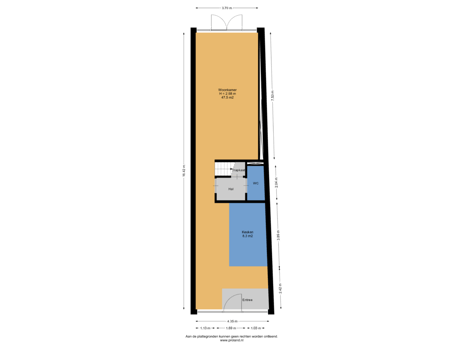 - 37 m² (8.50 metre deep and 4.30 metre wide)