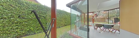 The villa combines the charm of detached living with contemporary luxury and sustainability. Its exterior features natural materials such as copper, steel, and mahogany, creating a stylish, robust, and elegant appearance. Inside, a modern poured floor with underfloor heating and mahogany accents provide a warm, sleek, and comfortable interior.