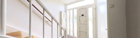 U komt binnen in een ruime hal met de trap naar de eerste verdieping aan de rechterzijde. Onder de trap zijn twee deuren: één naar de meterkast en één naar het toilet met fontein.