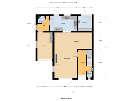 Binnenkomst is in een royale hal, die toegang biedt tot het toilet, de trapopgang en de woonkamer. De praktijkruimte bevindt zich in de uitbouw aan de voorzijde en heeft een eigen toegangsdeur vanaf buiten. Dit maakt het de ideale ruimte voor thuiswerken, een praktijk aan huis, hobbyruimte of speelkamer. De woonkamer is ruim en licht, met een sfeervolle zithoek aan de voorzijde en een grote eethoek richting de keuken. De kamer wordt gekenmerkt door grote ramen, veel lichtinval en een warme inrichting. Via een brede doorgang is de ruime keuken bereikbaar. Deze keuken beschikt over een functionele opstelling met veel werkruimte, een breed gasfornuis en voldoende kastruimte. Dankzij de ramen aan de achterzijde heeft ook deze ruimte prettig daglicht. Grenzend aan de keuken bevindt zich een extra ruimte met o.a. de cv-installatie en kasten, ideaal als bijkeuken. Deze is via de achtertuin te bereiken.