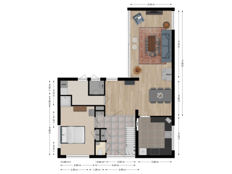 Maatvoering: Circa 4.26/5.16 x 2.90m