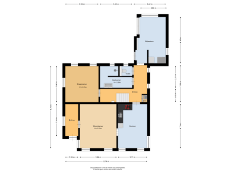 De centrale hal verbindt dus keuken, badkamer, slaapkamer en bijkeuken met elkaar, daarnaast is hier ook de trap naar de verdieping gesitueerd.