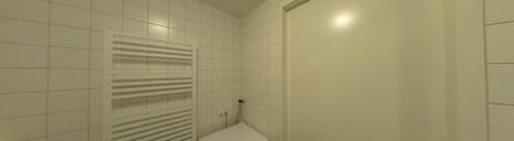 De badkamer is praktisch ingericht en voorzien van een toilet, douche en wastafel. Ook vind je hier de aansluiting voor de wasmachine.