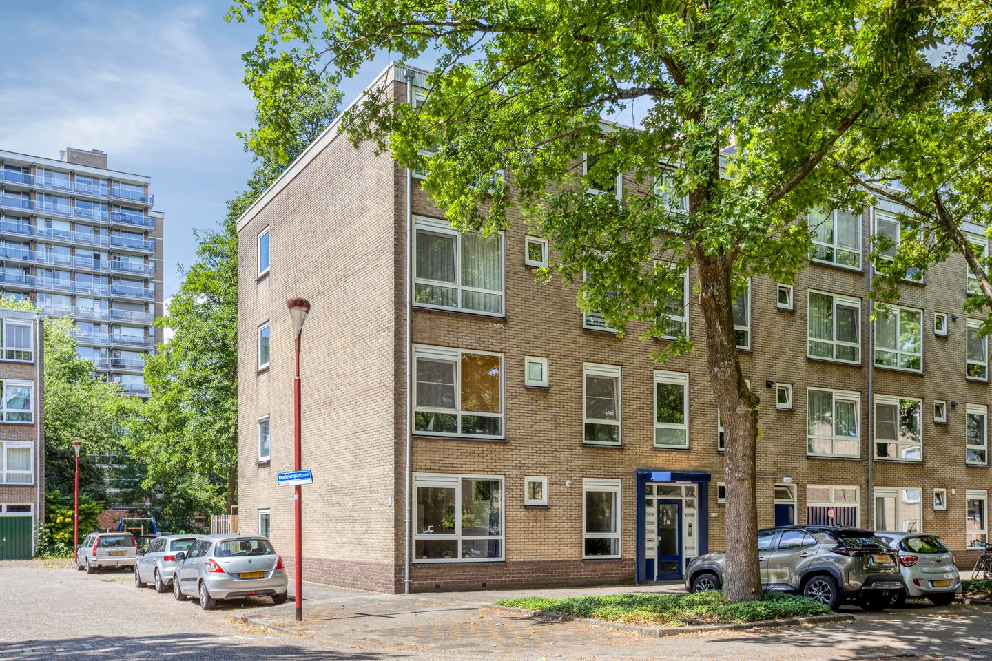Het appartement beschikt over drie slaapkamers – stuk voor stuk netjes afgewerkt met een laminaatvloer, deels behangen en deels geschilderde wanden. Alle slaapkamers zijn voorzien van inbouwkasten (groot en klein).