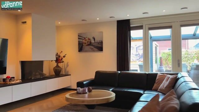 De uitgebouwde woonkamer is licht, ruim en sfeervol en vormt samen met de keuken het hart van de woning. De ruimte is voorzien van een PVC vloer met vloerverwarming en -koeling, Philips Hue spotverlichting met instelbare kleuren en openslaande deuren naar zowel de achtertuin als de voortuin. De luxe gashaard is geïntegreerd in een maatwerk tv-meubel en afgewerkt met een exclusief Dekton blad, hetzelfde hoogwaardige materiaal dat ook in de keuken is toegepast.