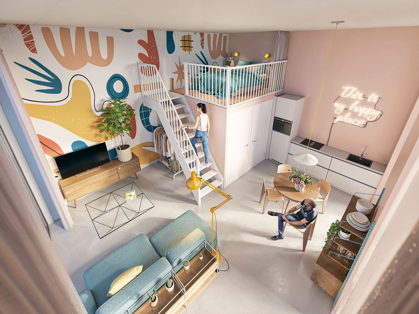 Compact studio with mezzanine