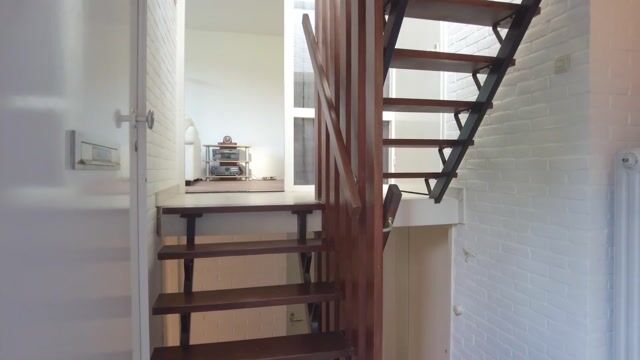 De lichte woonkamer is voorzien van een fraaie houten vloer en staat in open verbinding met de open keuken (2009), uitgerust met inbouwapparatuur. Door middel van een buitentrap is de achtertuin te bereiken.