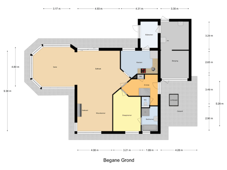 Begane grond met entree, hal, toilet en fontein, doorgang naar een (slaap)kamer annex badkamer met ligbad, douche en wastafelmeubel. De lichte woonkamer met parketvloer heeft een sfeervolle gashaard en een eethoek met schuifpui naar het terras. De aangebouwde serre met marmeren vloer zorgt voor veel lichtinval waarbij er tevens een prachtig zicht is op de tuin, deze serre biedt volop plaats voor gezellig tafelen en is een echte leef plek voor het hele gezin. De dichte keuken is voorzien van de nodige inbouwapparatuur en heeft een doorgang naar de praktische bijkeuken met loopdeur naar terras en berging.