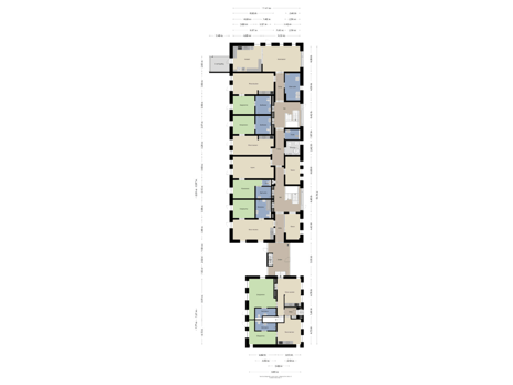 Overloop met aan de voorzijde 5 bergingen; Aan de achterzijde 3 units die allen voorzien zijn van een woonkamer, slaapkamer en badkamer. 2 zijn voorzien van een keukenblokje en 1 unit heeft een separaat toilet. Aan de rechte zijde van het pand een 4de unit met slaapkamer, woonkamer, separaat toilet en badkamer.
