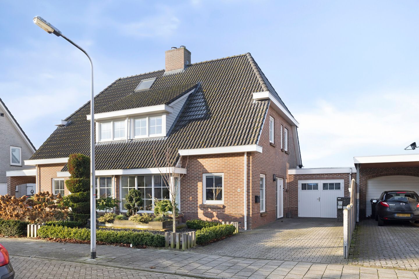 Op een fraaie locatie aan de rand van een kleinschalige nieuwbouwwijk in Noordscheschut, ligt dit hoogwaardig en actueel uitgevoerd HALF-VRIJSTAANDE WOONHUIS met royale garage, serre, overkapping en een fraaie, zongerichte achtertuin op een kavel van 276 m².