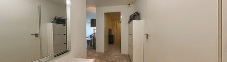 3e slaapkamer met opklapbed, vaste kasten en aansluitingen voor de wasapparatuur.