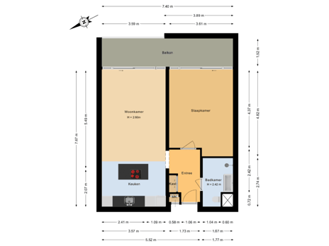 - 11 m² (1.52 metre deep and 7.40 metre wide)