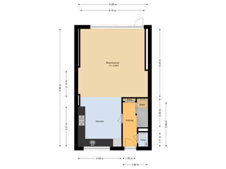Via de gezellige en zonnige voortuin bereikt u de entree van de woning. In de hal bevindt zich de moderne toiletruimte met fontein, de meterkast en twee praktische opbergkasten.