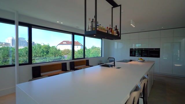 The garden level also houses a large multifunctional space, which can be used as a lounge, party room, office, practice space, or fitness area. This room is separate from the main home and accessible only via face recognition. It features a private entrance, guest room for business relations, and wellness area including sauna with infrared and Turkish steam bath. Also on this level are two guest bedrooms, each with a private bathroom and toilet, and a kitchen.