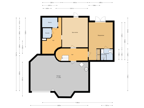 Souterrain: Wederom is via het trappenhuis vanaf de woonverdieping het ruime souterrain te bereiken. Overloop 4e slaapkamer met maatwerk inbouwkasten en dubbele openslaande deuren naar terras en tuin. 3e luxe badkamer voorzien van douche, toilet en wastafelmeubel met spiegel en verlichting. Fitnessruimte met airco en deur naar terras en tuin. Aansluitend de wellnessruimte met sauna en Turks stoombad. De inpandige garage van maar liefst 55 m2 is voorzien van een elektrische deur, aansluiting voor was-/droogapparatuur, wastafel en veel praktische bergruimte. Tevens is in de garage de technische ruimte aanwezig met de diverse installaties voor het verwarmde zwembad.