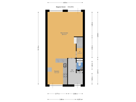 - 46 m² (8.92 metre deep and 5.20 metre wide)