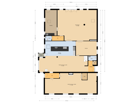 Via de achteringang (te gebruiken als hoofdentree) betreden we boerderij via (voorheen het knechtenhok) de bijkeuken. Via dit deel komen we in de zeer ruime woonkamer met getrommeld hardstenen vloer (vloerverwarming) en massieve houten balken die het een landelijk karakter geven. Vanuit de woonkamer kijkt u door de grote openslaande deuren (welke in zijn geheel open kan door middel van harmonicadeuren) zo naar de achtertuin en de weidse omgeving. Via een halletje is het toilet met fonteintje te bereiken.