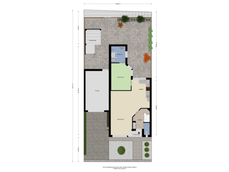 Aan de linkerzijde van de woning is de in spouw gebouwde garage die, vergeleken met een standaard garage, extra lang en breed is. De grote kasten, die veel bergruimte bieden, blijven achter. Vanuit de garage is er, via de sectionaalpoort, toegang tot de oprit en er is een deur naar de achtertuin.