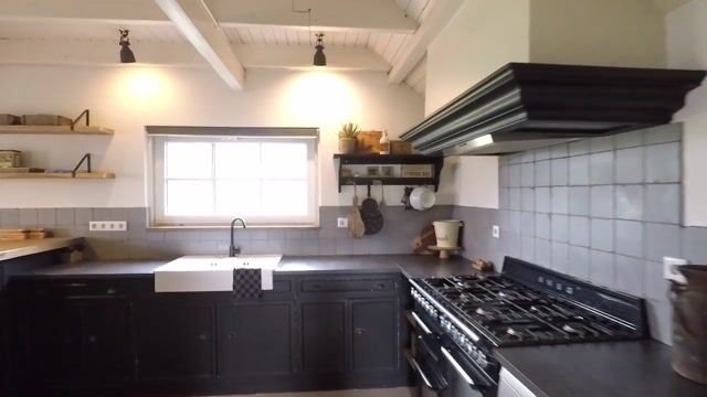De boerderij stamt uit 1927 en is door de jaren heen met liefde verbeterd. Je komt binnen in een hal met een authentieke estriken vloer die direct de toon zet. De woning beschikt over een gezellige woonkamer en een sfeervolle leefkeuken met robuust fornuis. Er zijn twee houtkachels, een pelletketel en ook de airco die verwarmen, dus aan comfort geen gebrek.