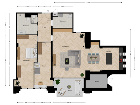 De grootste slaapkamer is ruim genoeg voor een tweepersoonsbed, kastruimte en eventueel een werkplek. De tweede slaapkamer is geschikt als logeerkamer, kantoor of hobbyruimte. De twee inpandige bergingen – van circa 5 en 7 m² – bieden extra veel opbergmogelijkheden.