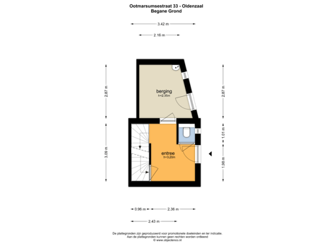 Private entrance with access to a practical internal storage room, a spacious basement, and a modern toilet with wall-hung fixture. The staircase leads to the upper floor.