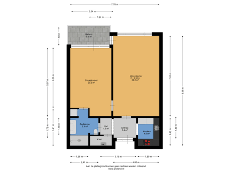 - Balkon (1.5 x 3.65 m²).