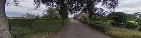 De brede, eigen oprit biedt ruimte voor meerdere voertuigen en zorgt voor een comfortabele en representatieve toegang tot de boerderij en bijgebouwen.