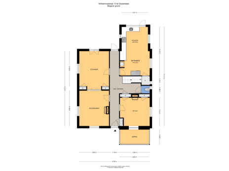 Aan de rechterzijde van de hal vindt u de provisiekelder en een ruime werk-/studeerkamer, die in open verbinding staat met de karakteristieke serre.