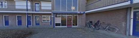 Hoofdentree met toegang tot de centrale ontvangsthal. In de hal treft u de brievenbussen en de trapopgang aan. Tevens is er een lift aanwezig in het hoofdgebouw.