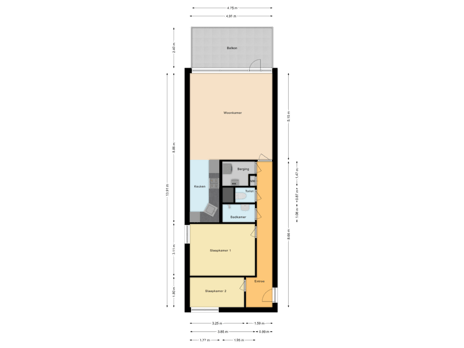 - 12 m² (4.92 metre deep and 2.43 metre wide)