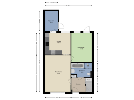 Ruime entree/hal met praktische trapkast, vernieuwde meterkast, trapopgang naar de eerste verdieping en toegang tot de luxe, volledig betegelde badkamer (uit 2022) welke is voorzien van een ligbad, inloopdouche, zwevend toilet en een wastafelmeubel. Vanuit de hal komt u in de sfeervolle woonkamer welke is voorzien van strak gestucte wanden. De keuken staat in verbinding met de woonkamer en beschikt over een geheel nieuwe keukeninrichting (uit 2022) met diverse kastjes, lades en inbouwapparatuur, te weten: een inductiekookplaat, afzuigkap, combi-oven/magnetron, koelkast, vriezer en vaatwasmachine. Via de hal bereikt u de praktische bijkeuken met een loopdeur naar de achtertuin. Ruime slaapkamer 1 van ca. 13m² is bereikbaar vanuit de woonkamer en beschikt eveneens over een loopdeur naar de achtertuin. De gehele begane grond is voorzien van een fraaie tegelvloer.