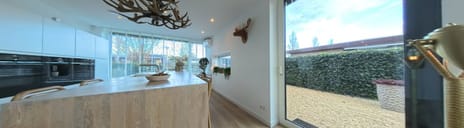 De open keuken met eethoek sluit naadloos aan op de woonkamer en vormt het echte hart van de woning. Er is volop ruimte en het moderne keukenblok is uitgerust met hoogwaardige apparatuur en alle gemakken van nu. De keuken beschikt over een Quooker-kraan, Bosch vaatwasser, een AEG-inductiekookplaat met geïntegreerde afzuiger, een Bosch oven/magnetroncombinatie, een Bosch stoomoven, een ingebouwde koffiemachine én een warmhoudlade. Daarnaast zijn er een royale koelkast en een grote, separate vriezer aanwezig.