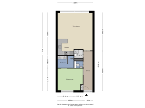 Hal met toegang tot alle vertrekken met meterkast, toiletruimte en praktische berging met witgoedaansluitingen, cv-opstelling en mechanische ventilatie-unit. Woonkamer met open keuken in L-opgesteld uitgevoerd met diverse inbouwapparatuur. Aan de achterzijde gelegen slaapkamer met toegang tot de badkamer met inloopdouche en dubbel wastafelmeubel met spiegel.