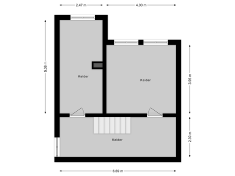 De kelder (44 m²) bestaat uit 3 ruimtes. Genoeg ruimte dus voor bijvoorbeeld je proviand of eigen wijnkelder.