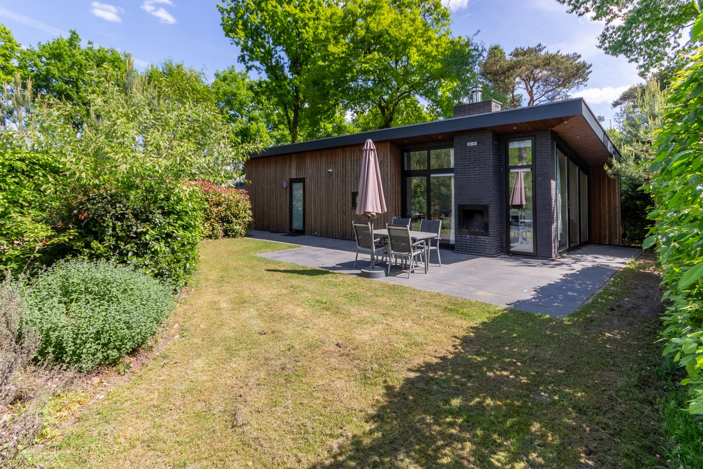 Naast al het moois wat de recreatiewoning zelf aan de binnenzijde heeft te bieden, gaat het genieten buiten weer verder. Op het perceel is er een parkeerplaats om de auto te parkeren. Daarnaast is er een fijn terras aan de woonkamer zijde. Een goede plek om optimaal van het weer te genieten. Wordt het wat kouder? Dan kan de houthaard aangestoken worden en hieromheen een gezellige zithoek gevormd worden. Verder is de tuin afgewerkt met gazon en fraaie sierplanten en struiken. Hierdoor is er een plek gecreeerd met zeer veel privacy. De dagelijkse stress wordt op deze plek volledig achter je gelaten. De recreatiewoning beschikt over een inpandige berging voor het opbergen van de fietsen. Daarnaast bevindt zich hier de C.V.-installatie en zit hier de aansluiting voor een wasmachine.