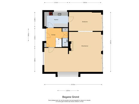 Begane grond: Je komt binnen in de nette, centrale hal waar direct de fijne indeling zichtbaar wordt. Hier vind je de trap naar de eerste verdieping en het toilet. Vanuit de hal heb je aan de linkerzijde toegang tot de keuken en aan de rechterzijde tot de royale woonkamer. Een entree die je direct het gevoel van thuiskomen geeft.