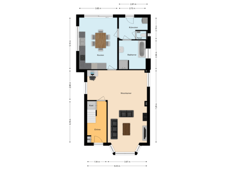 Naast de keuken bevindt zich een praktische bijkeuken, waar de aansluitingen voor het witgoed zijn voorzien en de CV ketel ( Nefit 2002) hangt. Op de begane grond vindt u verder een separaat toilet en een badkamer (8m2), die compleet is uitgerust met een douche, een bad en een wastafel.